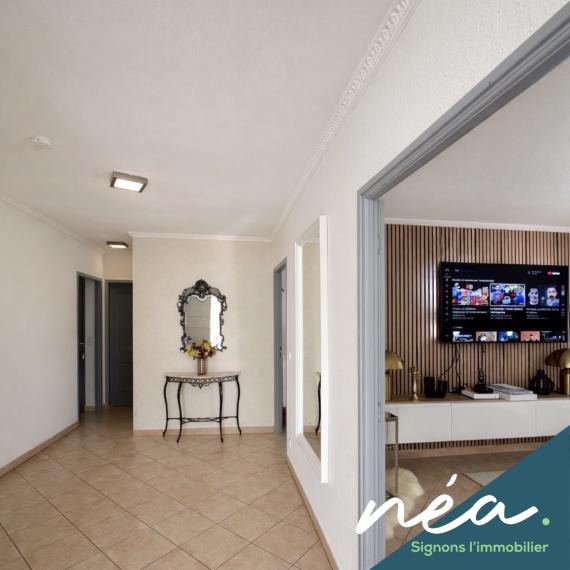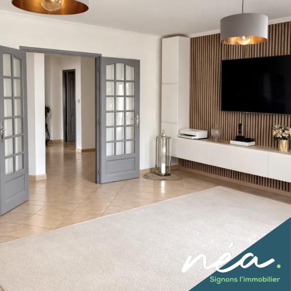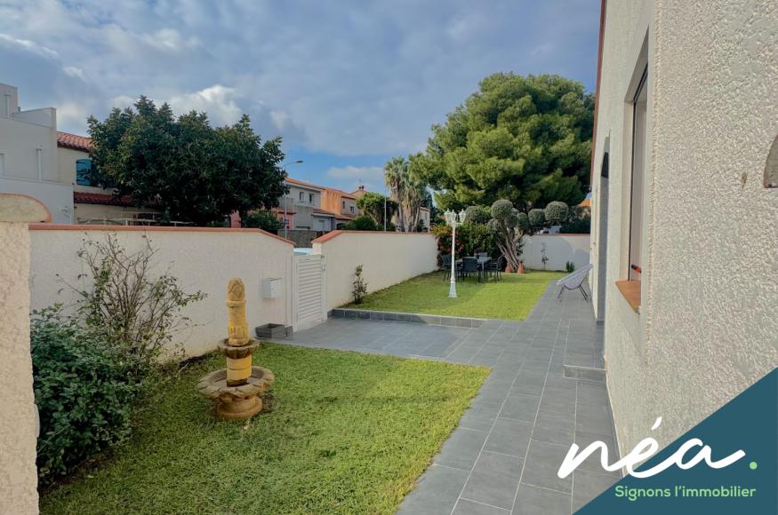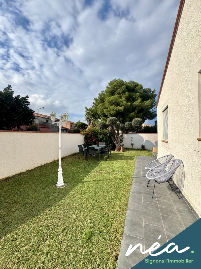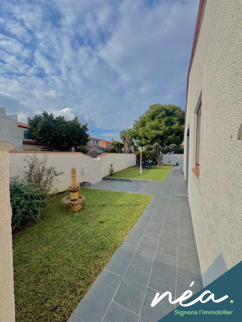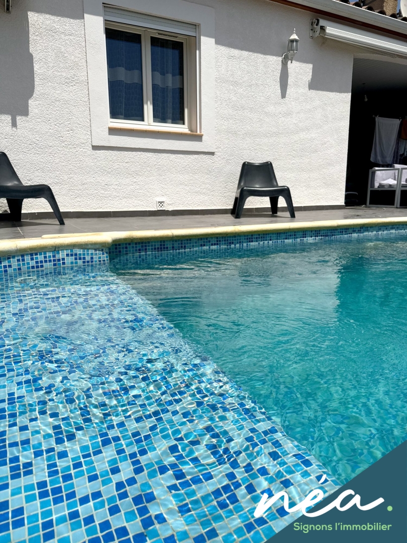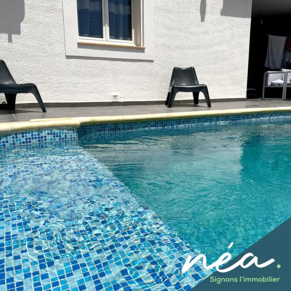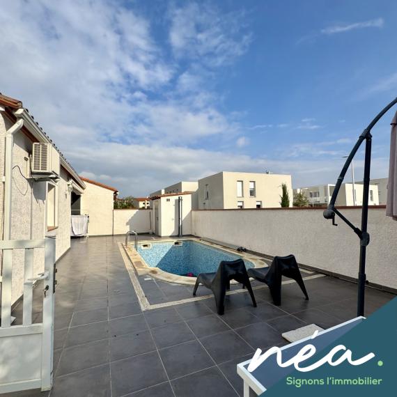 PERPIGNAN (Saint-Gaudérique) - RARE ! BELLE VILLA (2003) PLAIN-PIED DE TYPE F5 (Env. 120 m² hab) - CUISINE EQUIPEE INTEGREE (Poss US) - SALLE A MANGER - 3 CHAMBRES - SDB EQUIPEE (Douche à l'italienne - Baignoire) - 2 WC - POMPE A CHALEUR (Clim réversible + radiateurs) - PVC/ALU DV - BUANDERIE/CHAUFFERIE/CELLIER - TERRAIN PLAT ET PROFITABLE - TERRASSE COUVERTE - PISCINE ENTERREE - 2 STATIONNEMENTS DANS LA PROPRIETE